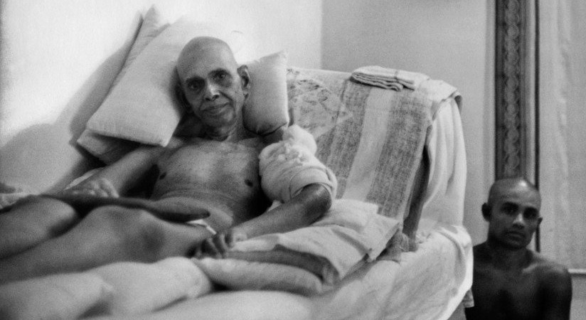 I went up to the couch and sat down beside it. Without thinking I rested my arm on the coverings, and the disciple who was massaging the Maharshi made to move me further away. Perhaps he was jealous that a newcomer should be accorded the privilege of an interview, or he may have been annoyed that anyone should disregard the doctors who had advised against any more private discussions. But the Maharshi made it plain that I was to come as close as I wished, and he then talked to me for half an hour, sometimes in English and sometimes in Tamil which was translated for me. It was a difficult conversation, for each time I used the words “you” and “I” the sage would smile and ask: